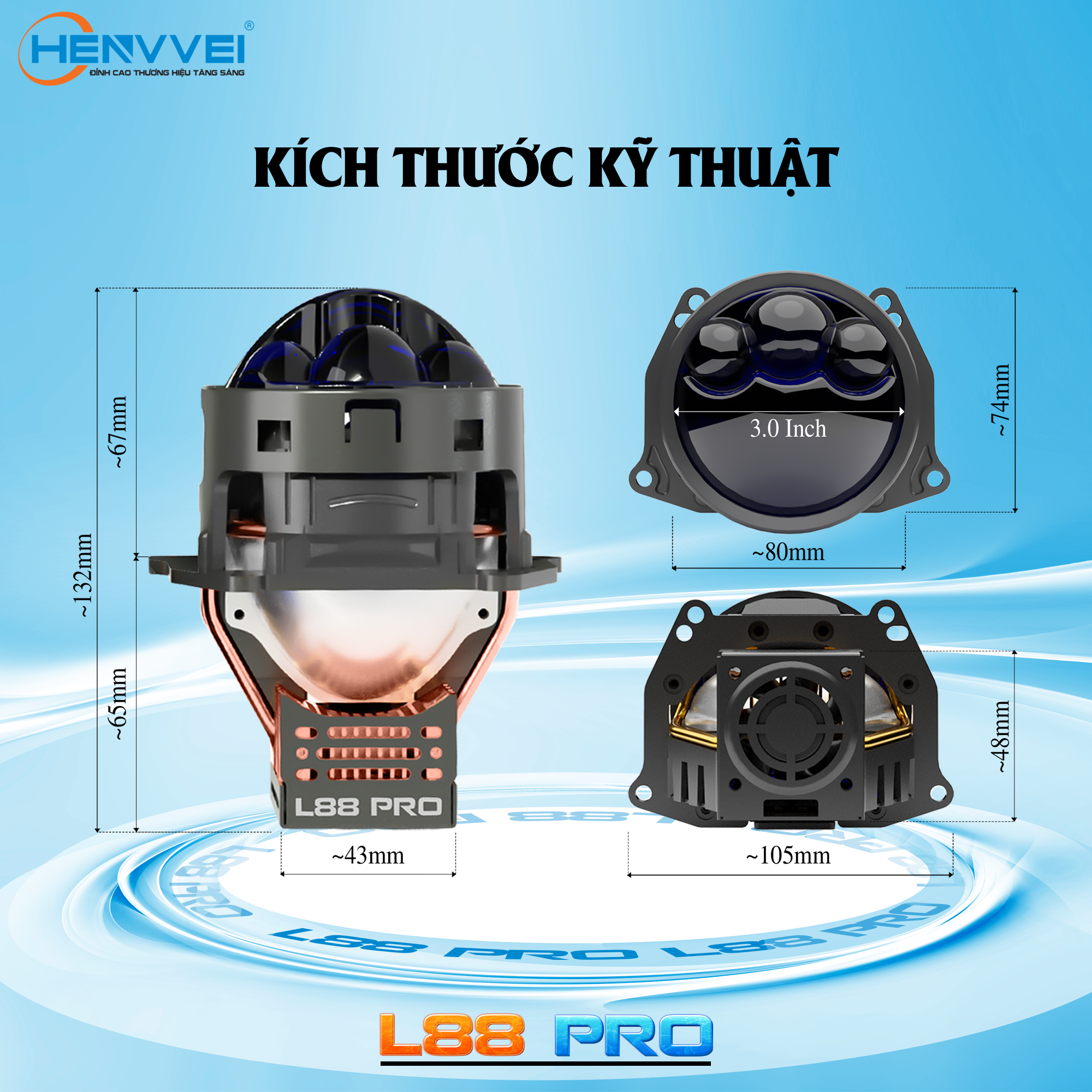 Đèn bi LED L88 Pro là dòng đèn tăng sáng được phát triển từ thương hiệu cao cấp Henvvei. Với cấu hình chiếu sáng vô cùng mạnh mẽ, bi LED L88 Pro không chỉ tạo ra vùng chiếu sáng ấn tượng mà còn gia tăng vùng quan sát cho người điều khiển trên mọi tuyến đường.